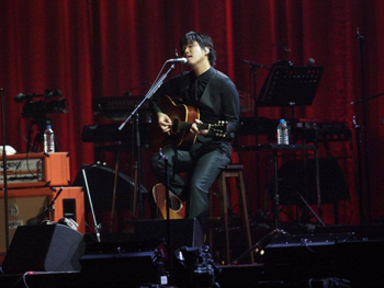 ライブは「青い蝶」のギター1本の弾き語りからスタート。いきなり伸びやかな歌声で会場を一瞬にして自分の世界に染めあげ、2曲目でベースと、3曲目ではアコースティックギター2本でのセッション…と、ステージは淡々と穏やかに進行する。まるで大きなライブハウスのような親密度の高い音空間が、アリーナ会場を埋め尽くした。
