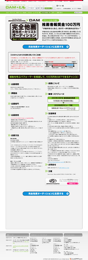 応募資格は、2012年3月31日時点で17歳以上、23歳未満の男性であること。歌唱ジャンルは問わず、課題曲も自由選曲でOKだが、候補者自身がDAM★ともレギュラー会員であることが必要となる。