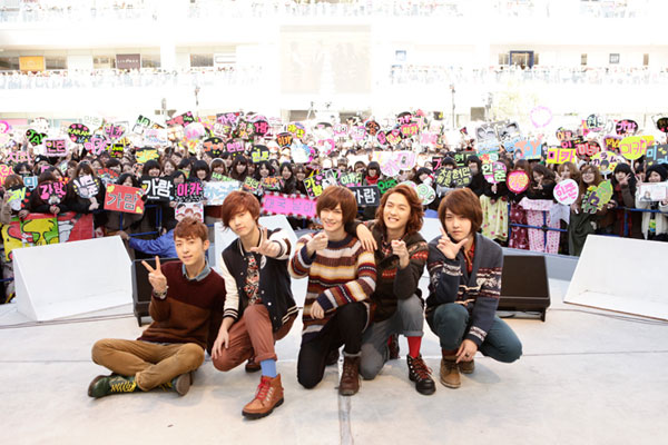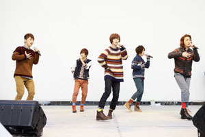 ミニ・ライヴでは、新曲「Love Days」など全4曲を披露。MCでは昨年(2010年)来日してからの一年半を振り返り、改めてファンへの感謝を感じた様子で、メンバーからのクリスマス・プレゼントとして「We Wish You A Merry Christmas」をアカペラで歌唱。感動して泣きだすファンが続出したほど、約10,000人の心はあたためられたようだ。