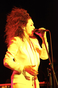 それに続いた田中知之も、自身の真骨頂とも言えるダンス・トラックにスメタナの名曲「モルダウ」の美しい旋律をインサートさせるなど、洗練されたDJテクニックを披露する。さらにSebastien Tellierは、ささやくように奏でるその歌声は同じフランスの名シンガー、セルジュ・ゲンズブールをどことなく彷彿とさせるようなオーラを感じた。自ら奏でる鍵盤と、サポート・ミュージシャンのシンセサイザーの音色に包まれながらゆったりとしたテンポで歌い上げる官能的な音世界に、会場を埋めたオーディエンスは心地よく酔わされた。