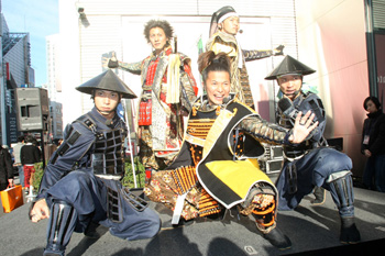 イベント会場では待ち構えた限定120人のファンを前にDVDにも収録されている武将隊おなじみの演武や新曲の「一撃 -ICHIGEKI-」を披露。約20キロの甲冑を身に付けたままの歌唱とダンスのパフォーマンスは、まさにド迫力だ。またラフォーレ原宿やH&Mなど、若者の集うエリアとはミスマッチな武将たちの姿に道行く人も目を奪われ、2回公演合わせて3,000人ほどの人が足を止めた。