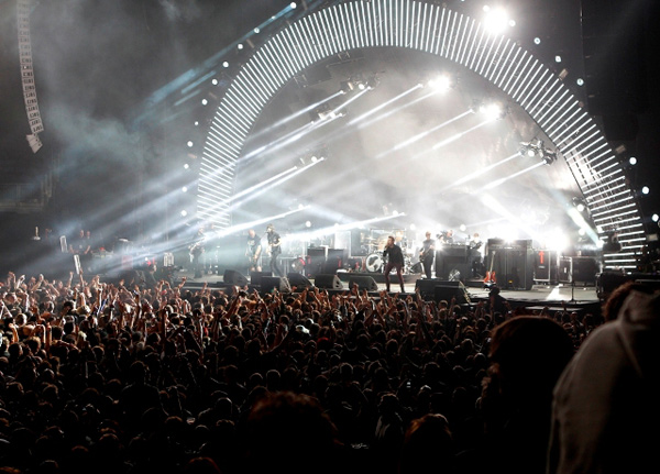 約20万人を動員したUK/ヨーロッパ・ツアーを終えたばかりのカサビアンだが、今ツアーの最終公演を飾ったのもこのロンドンO2アリーナの2公演だったが、ステージには巨大なアーチ状のライティングと半球状のスクリーンが組まれ、テクノロジーを駆使した光と映像が冒頭から炸裂、「デイズ・アー・フォーガットゥン」から、アンコールの最後を締めた「ファイア」までの全19曲がパフォーマンスされた。