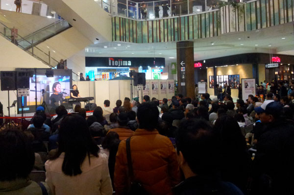 初のミニ・アルバム『誰が為に鐘は鳴る』を12月14日にリリースした女性シンガー・ソングライター/まきちゃんぐが、その発売を記念して東名阪フリー・ライヴを開催。12月17日にタワー大阪梅田丸ビル、12月18日は名古屋 徳重ガーデンプレイス、そしてクリスマス直前の12月23日イオン越谷レイクタウンにて、ライヴ&サイン会を開催。この3会場合計で約1500人が集まり、その歌声に耳を傾けた。