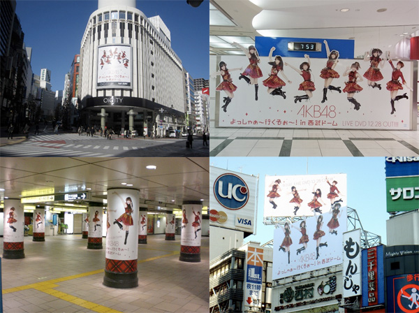 『AKB48 よっしゃぁ~行くぞぉ~! in西武ドーム』ライヴDVDの広告は、確認されているだけでも以下のような場所で展開されているので、冬休み中の間に観に行ってみてはいかがだろうか。