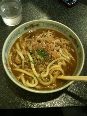 | ▲写真:ツアーで訪れた高松の名店「鶴丸」の「牛しゃぶカレーうどん」 |