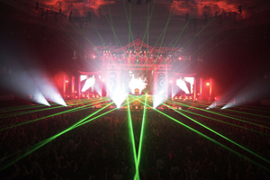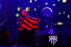 正月恒例のライヴでありながら、常に新しい試みを取り入れているT.M.Revolution。今年はステージに朱塗りの神社風セットが組まれ、物販ブースには御守りやおみくじも登場、まるで“T.M.Revolution流初詣”といった趣。