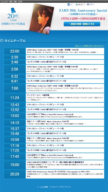 24時間タイムテーブル:http://info.nicovideo.jp/zard_timetable/