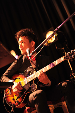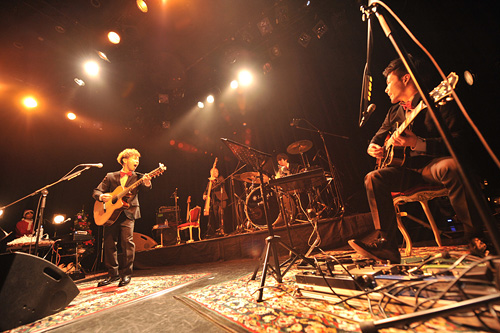 5曲目からは、「Get Acoustic Soul」シリーズを振り返るということで、8月から10月まで、豪華なゲストと共にライヴで演奏してきたD.W.ニコルズ、土岐麻子、FLYINGKIDS(Get Acoustic Soulでは浜崎貴司と共演)のカバーソングを立て続けに披露。「SQUALL」では、オリジナルではスチャダラパーのBoseのラップパートをBa,谷浩彰が担当し、ハンドマイクで客席を煽る場面も。