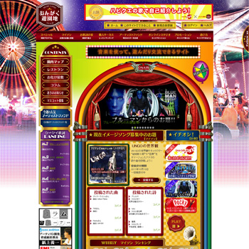 テーマはそのアーティストごとに設定されており、例えば、「アルバムを作って、1年間で1万枚売り切る」といった内容や、「ホールでのワンマンライブを満員にする」といった王道的なテーマから、面白い内容では、「バツ3のアイドルが懲りずに結婚相手を探す」といった内容や「ひきこもりのボカロPが、ひたすらamazonで生活していく」といった内容。また壮大なものでは、10年前に流行った某番組のヒッチハイク横断のように、「路上パフォーマンスだけで全国横断」といった内容や「10万人の歌詞を繋げて曲を作っていく」といった内容もある。しかも、遊園地というだけあって、その目標に対して閲覧しているユーザーがサイト上から参加して、様々な助言や支援で応援できる仕組みが用意されているのも新しい。