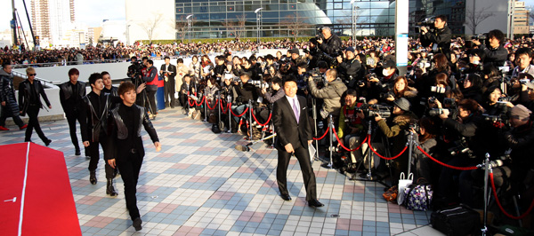 「ゴールデンディスク賞」が行われた会場の京セラドームには、2日間合計で5万人のK-POPファンが訪れ、11日のレッドカーペットには3千人のファンが詰めかけた。