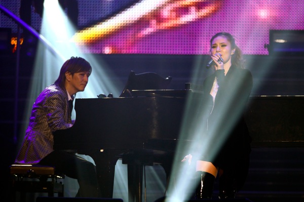 2NE1と一緒に、彼女たちの楽曲「UGLY」のコラボパフォーマンスを終えて、「私は、2NE1(トゥエニィワン)じゃなくて、31(サーティーワン)だから……大変ですね。18歳のMINZY(ミンジ)ちゃんとジャンプするのが……大変です。靴も高くて(笑)」と、息を切らしたGummy(そもそも彼女は“韓国バラード界の女王”と呼ばれているとおり、2NE1のようなダンスチューンはあまり歌わない)。そんな彼女が、「このステージのために特別に準備した曲で、昔、勉強のために日本に短期間住んでいた際に耳にして、いつかカヴァーしたいと思っていた、日本で大ヒットした曲」「今日は、スペシャルなゲストの方と一緒にパフォーマンスします。『DEPARTURES』。」と、次に歌う曲を紹介する。