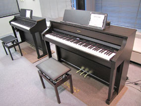 全モデルに日本語表示の液晶画面を採用、直感的な操作が可能になったのも家庭での使用にはうれしいところ。ボリューム調整ができ、2系統のヘッドホンも使用できるので、夜間など時間帯を気にせずレッスンや演奏が楽しめる。また、豊富な練習曲も内蔵。ピアノの名曲(75曲)のほか、ピアノのレッスンでよく使われている「バイエル」(106曲)や「ブルグミュラー」(25曲)も用意。USBメモリーに保存した曲を再生しながら演奏したり、自分の演奏をUSBメモリーでパソコンに取り込んでオーディオCDにすることもできるなど、デジタルならではの機能も充実している。