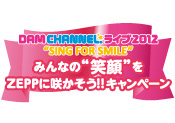 <あなたの“笑顔”をZEPPに咲かそう!!キャンペーン>と題し、<DAM CHANNEL ライブ 2012>特設サイトにて、みんなの笑顔の写真とその一言を募集している。