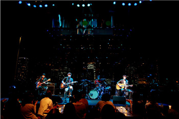 ステージのバックにあるカーテンが開きミッドタウンのイルミネーションがきれいに輝く中、CNBLUEが登場、会場は拍手に包まれた。「Let’s Go Crazy」からライブがスタート。「寒い中、来ていただいてありがとうございます。風邪引いてないですか?一緒に盛り上がってください。」とヨンファ。いつもと違った雰囲気の会場ながら、「Now or Never」では、お客さんが手をあげて手拍子し、一体となって盛り上がった。