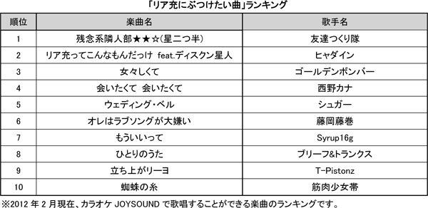 非リア充からリア充へ言葉の鉄拳、「リア充にぶつけたい曲」ランキングトップ10