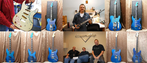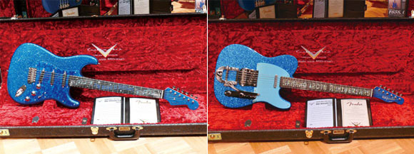 フラッグシップモデルとなるマスタービルト製品は、煌びやかなブルー・スパークル・フィニッシュで仕上げたBlue Stratocaster、Blue Telecaster、Vintage Blue P-Bass Customをベース・モデルとし、マスタービルダー達のアイデアを加えた特別仕様。