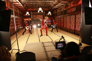 アルバムのリード曲「MUSIC NIPPON」のミュージック・ビデオは、楽器を持ち込んでのパフォーマンス。もちろんドラムセットの下には傷をつけないよう保護シートを敷き、靴も撮影用に用意し、万全の態勢で挑んだ。