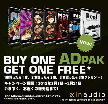 今回のキャンペーンは、XLN Audio社(スウェーデン)の人気ドラム音源「Addictive Drums」の拡張パック「ADpak」を購入すると、好きな「ADPpak」をもう1つプレゼントするというもの。