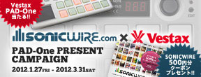 「~MEET THE DEVICE~ SONICWIRE X VESTAX プレゼントキャンペーン」は、期間中、SONICWIREでサンプルパックおよびソフト音源を購入した人の中から抽選で2名にVestaxのパッドコントローラー「PAD-One」をプレゼントするというもの。