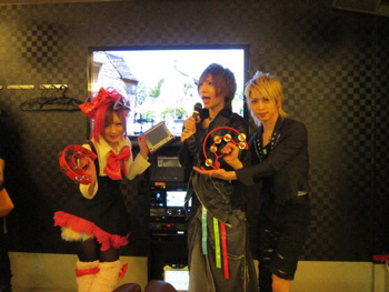 2011年7月にシングル「RED EMOTION ~希望~」でメジャーデビューを果たし、来る2012年3月14日にはメジャー1stアルバム『Restless』のリリースも決定したν[NEU]。その『Restless』収録曲の「Restless Love」は、「リアル鬼ごっこ」を始めとする人気作を数々生み出した作家・山田悠介による原案のサスペンス映画『Xゲーム2』(今春公開予定)の主題歌に決定するなど、現在注目度急上昇中のネオ・ヴィジュアル系シーンの新星がファンと大盛り上がり! 彼らの2ndシングル「カレイドスコープ/cube」の着うたフル(R)をDAM★うたフルでダウンロードしたファンの中から選ばれたファンを招いての、超貴重なプレミアム・カラオケパーティーが開催された。