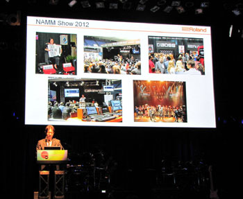 今回の発表会は、1月にアメリカ・アナハイムで開催された楽器展示会WinterNAMM Show 2012で発表された製品を中心としたもので、2月8日、東京都港区のライブハウス赤坂ブリッツで行われた。製品発表のプレスリリース情報は1月中に出されていたものの、販売店および報道関係者を中心とした来場者が実際に製品を目にするのはこの機会が初となるタイミングだ。