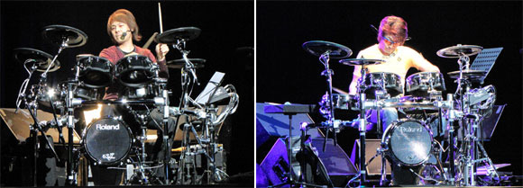 ▲奏法による微妙なニュアンスからパワーを感じさせるドラミングまで、V-Drumsで生ドラムと遜色ないサウンドを叩き出した山崎彰と村石雅行。