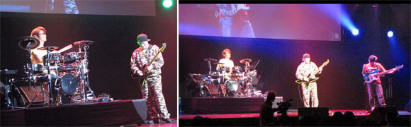 ▲ラストは、今回発表の新製品によるバンドアンサンブルの演奏。高崎晃のGT-100、村石雅行のTD-30KV-S、後藤克臣のベースという編成により、すさまじいパフォーマンスで轟音を響かせた。
