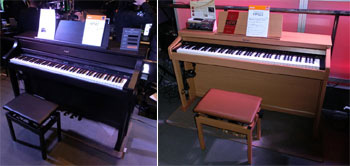 ▲無段階の音色変化が特徴のスーパー・ナチュラル音源搭載のHP500シリーズ。写真左はHP507(ローズウッド調仕上げ)、右はHP503(ライトウォールナット仕上げ)。