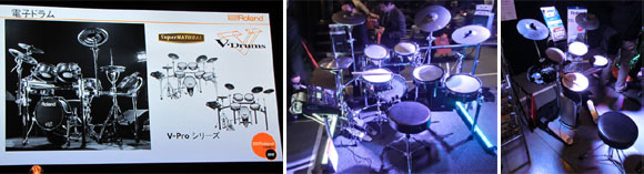 ▲電子ドラムはV-DrumsのフラッグシップモデルV-Proシリーズ2モデルに加え、ホームユース向けのHD-3が登場。