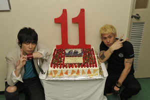 「今日は(撮影の)カメラが多いので、何かあやしいと思っていたけど(まさかサプライズがあるとは思わなかった)」と照れ笑いした堂珍と川畑。そして「今日3月7日でCHEMISTRYはデビュー11周年を迎え、12年目に突入しました」と宣言し、ケーキに立てられた「11」をかたどったロウソクを二人揃って吹き消した。