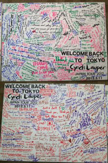 「トゥルー・カラーズ」が美しく終了したあと、最後にシンディが一言「オヤスミナサイ。ガンバッテ。ジャーネー。」素晴らしい1時間半のライヴでした。途中会場の中に入って見てみましたが、泣いてる人の多いこと!そして「ありがとう!シンディ」「ありがとう!」という声がいろんなところから聞こえてきました。終演後メッセージボードに書き込まれたコメントもいっぱい。外では「いや~久々にライヴ観て感動したね。いいライヴだったね。」との声もあちこちで聞こえてきました