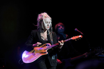 生中継もあることもあるシンディは気合い充分!1曲目「SHE BOP」から早くの客席に降りていき、観客をあおって盛り上げる(2回も下りていく)。2曲目「Set Your Heart」でダンスビート、3曲目でギターを持って「When You Were Mine」「What’s Going On」~「Lyfe」のグル―ヴ感溢れるナンバーへと様々な異なる色彩りを見せるサウンドを披露。お次はブルース・セクションへ突入。