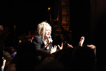 続く「CHANGE OF HEART」では、最後の方で客席に入っていき、最後の“HEART”の部分を観客全員で歌う。本編最後の「MONEY」が終わると「アリガトウゴザイマース!」と言って一度引っこむ。アンコールの手拍子に合わせて再び出てくると、「GOONIES」そして「GIRLS JUST WANNA HAVE FUN」をメドレー的に連発。またまた客席に降りて行くこと2回。いつもの掛け合いもあり最高潮。