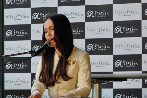 1曲目はロングヒット中の「雲の向こう」。2曲目は、彼女が中学校を卒業する際にクラスメイトと一緒に恩師のためにつくった曲で、卒業シーズンを迎えた今にピッタリな「ありがとう」を演奏。さらに「ヒカリ」、今年1月に自身初めてとなるドラマ主題歌の書き下ろし楽曲でNHKドラマ10『タイトロープの女』主題歌に起用された「きっと、ずっと」を続けて演奏。ライヴ最後には、3月1日に高校を卒業したばかりの彼女が、これから一人のシンガーソングライターとしてどんな苦難にも立ち向かおうと強い想いをこめた「未来への扉」を演奏。ピアノと歌のみでのパフォーマンスながら、祝日でごったがえす雑踏を打ち消し、京都駅いっぱいに彼女の力強くかつたおやかな歌声が響き、特設スペースの観客はもちろん、気付けばそのまわりを取り囲む多くの人々から大きな拍手が送られた。