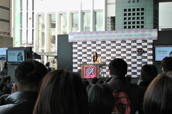 そんななか、井手綾香が3月20日に、京都FM局α-STATIONが京都駅1階の特設ステージにて開催した<SUNNYSIDE BALCONY SPECIAL LIVESHOW in 京都駅ビル>に登場した。当日は、限られたスペースに所せましと列がつくられ、来場した約550名もの観衆が井手綾香の弾き語りライヴに耳を傾けた。