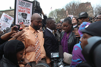 3/21、ニューヨークのユニオン・スクエアでジマーマンの逮捕を求めるデモがあった。被害者の両親はイベントの支持者に挨拶するために現れ、デモをマーティンが死んだときに身につけていたスウェットシャツにちなんで「ミリオン・フーディ・マーチ」と名付けた。