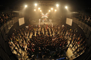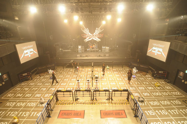 ライヴ前日には、メンバー、スタッフ総動員で仕込み作業に専念し、2階は親子席、1階はテープでマスがきれいに区切られ、中央にカオスエリア、左右にガヤエリア、後方にペアエリア、最後方には障子付きの屏風(指で穴を一つ開けていい)で仕切られた補欠エリアも用意され、準備万端の状態で迎えた世紀の一夜<MASTER OF TERRITORY~俺たちにマスはある!~>。