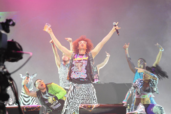 メンバーのスカイ・ブルーがドクターストップで来日できないというハプニングがあったことも忘れさせるほど会場のLMFAO熱は高く、会場はLMFAOTシャツや緑や赤のアフロを着用したParty People達で埋め尽くされていた。