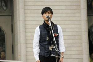 森山直太朗、満開の桜の下で「さくら(独唱)」熱唱