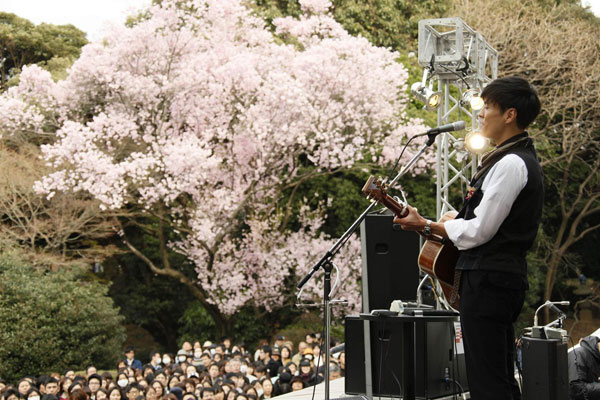 森山直太朗、満開の桜の下で「さくら(独唱)」熱唱