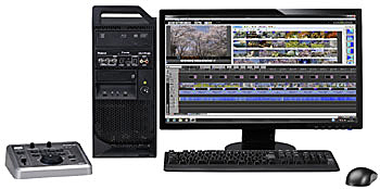 ▲ストレスフリーの編集で好評のビデオ編集機専用機「DV-7DL」シリーズのユーザー・インターフェースを継承。ハイビジョンの各種フォーマットに対応した編集ソフトウェアがプリ・インストールされる。