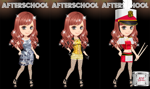 今回、アバターをカスタマイズするための、ヘア、衣装、小物にAFTERSCHOOL関連のアイテムが登場。デビューシングル「Bang!」の赤いマーチング風の衣装や、彼女達の代表的なパフォーマンスの道具であるマーチングドラムやステッィク、日本第1弾アルバム『PLAYGIRLZ』ジャケットのゴールドと黒を貴重としたゴージャズな衣装に、セクシーな網タイツなどが用意される。もちろん同ゲームにおいて、K-POP関連アイテムの登場は初めてだ。