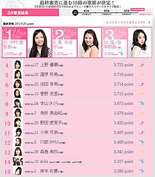 総投票数50万票突破<ドリームボーカルオーディション>、ファイナルステージ進出の15組がついに決定