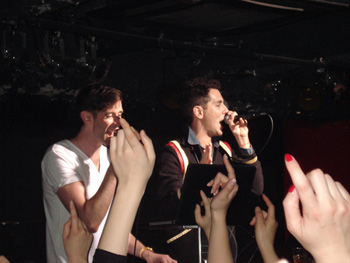 通算4作目となるアルバム『ナイトシェイズ』のプロモーションのために来日したヴォーカルのゲイブ・サポータとライランド・ブラッキンソン。クロスビートとの取材は、彼らがランチタイムから戻ってきたところで始まった。編集部中嶋が「今日は何を食べたの?」と聞くと、ライランドはとてもナチュラルな日本語で「エビ天うどん」と即答。ゲイブも滞在中はお気に入りの和食メニューを毎日食べていたそうで、寿司は卵、かっぱ巻の他にアボガドやターキーが入った洋風のものがお気に入り。そして揚げ出し豆腐も欠かさないらしい。渋い。