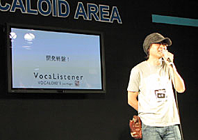 「VOCALOID NEWS」は、会場内に設けられた超ボーカロイドエリア内のステージ最初のイベントとして行われた。超ボーカロイドエリアは、VOCALOIDが体験できる展示や各社の物販ブースをはじめ、VOCALOIDの歴史年表、等身大VOCALOIDパネルの展示、体験型アトラクションなど並ぶエリア。ステージではカラオケ大会や作曲講座などさまざまな催しが行われたのだが、その1発めがこの発表会というわけだ。