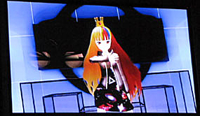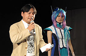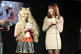 ▲韓国SBSアートテックからはキム・ヒョウン氏が「SeeU(シユ)」(2011年12月発売)のコスプレーヤーを伴って登場。ニコニコ動画で行われている楽曲コンテストへの参加を呼びかけるとともに、韓国の楽曲コンテストの受賞曲のコンピレーションアルバム(夏発売予定)について紹介した。