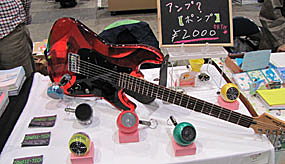 ▲大手企業だけでなく一般ユーザー参加の展示が多いのもニコニコ超会議の特徴。写真は、ジャンクパーツなどを使ったアイテムを展示していたZONBIE-TECH。手前の球形の物体はギターに直結できるスピーカー付きの小型ギターアンプ「ポンプ」。9V電池で駆動、オーバードライブサウンドが楽しめる。