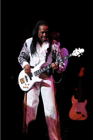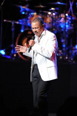 定刻を過ぎた19:15。会場が暗転して、コーラス/パーカッションの若手2人が飛び出してきてオーディエンスを煽る中、フィリップ・ベイリー(ボーカル/パーカッション)、ヴァーディン・ホワイト(ベース)、ラルフ・ジョンソン(ボーカル/パーカッション)が登場すると観客は一気に総立ち。そのまま「ブギー・ワンダーランド」のイントロが流れると、オーディエンスのテンションはいきなりマックス。3人とも1951年生まれ(フィリップが61歳、他の2人は60歳)とはとても思えない軽やかなステップを踏む。