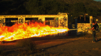 映画を愛したアダム・ヤウクが心底入れ込んで配給した『ベルフラワー』の話題のひとつでもあるのが火炎放射器。エヴァン・グローデル監督とオシロスコープ社の契約書には、「エヴァンは火炎放射器を2器、アダムに製造・提供しなければならない」という条項が含まれている。まだその火炎放射器を納品しておらず、契約違反にならないか心配していたエヴァンにアダムから携帯メールが届いた。「火炎放射器のことは気にしなくていい。でも実際に火を噴かなくてもオフィスに飾るだけでもカッコいいから、余裕があったら頼む。」これがエヴァンとアダムの最後のやりとりだった。