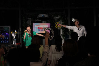 さらに、愛知県、山口県、石川県など全国からファンが集まる中、小さい女の子の姉妹が手渡しで花をプレゼントするサプライズも。ベッキー♪#から直々にカラオケで歌うコツを教われる「課題曲のコーナー」では、GReeeeNの作曲による爽やかなメロディにベッキー♪♯が歌詞を乗せた楽曲「風のしらべ」をレクチャーの後、全員で歌い、感動で涙を浮かべるファンの姿も。「とにかく前へ行こうぜ! っていう曲。私の夢はこれなんだ! って頑張っている人には響く曲じゃないかなと思うんで、とにかく楽しんでもらいたいです!」と曲紹介して披露した新曲「ヤルキスイッチ」も、歌声から伝わってくるベッキー♪♯らしいポジティブな雰囲気に大きな歓声が巻き起こる。